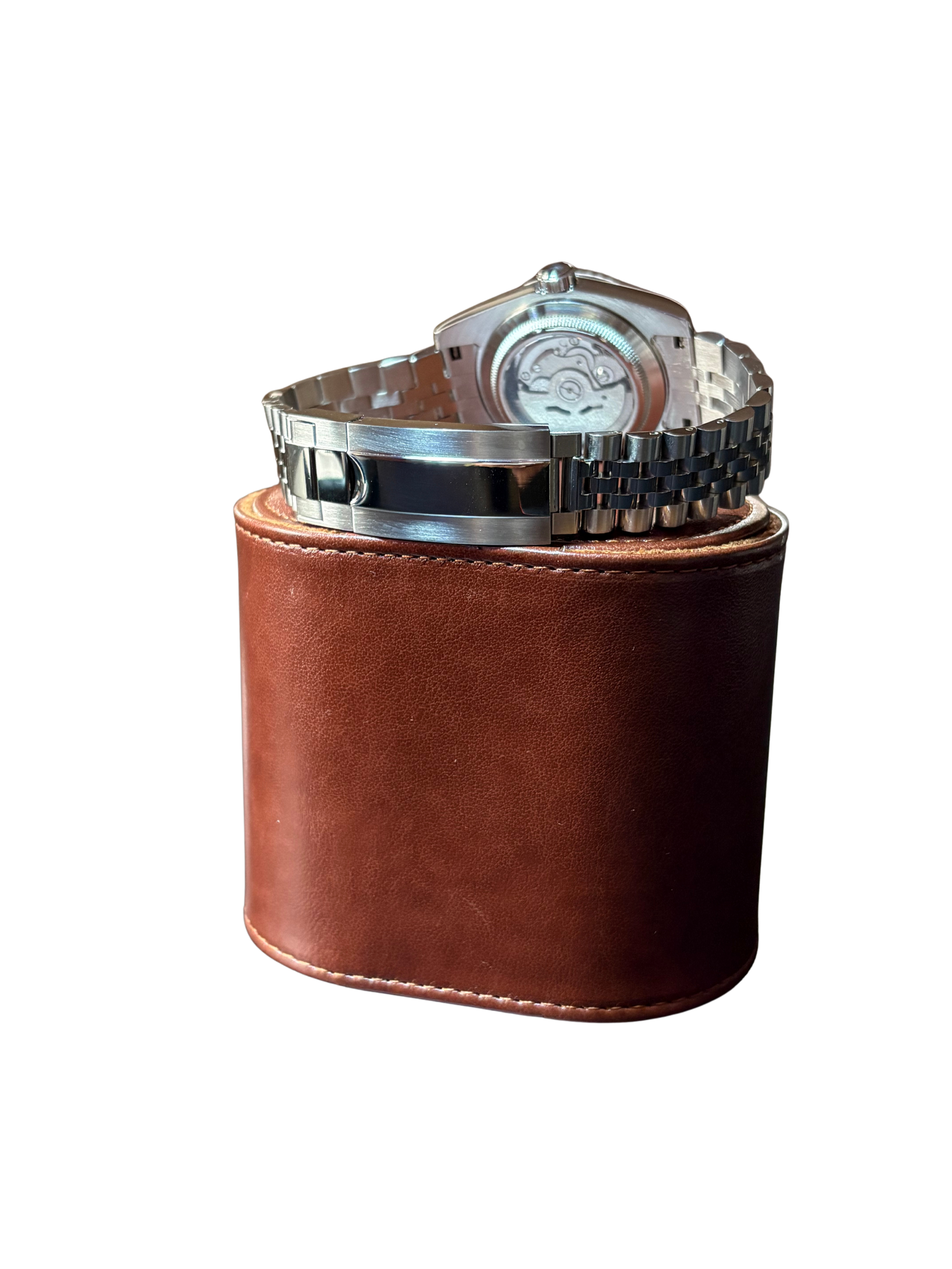 A classic. Olive green dial on the silver case. Built to stand out while keeping performance at its core. For customisations and such as colours and logo design, contact us through Instagram direct messages or our 'Contact Us' page.